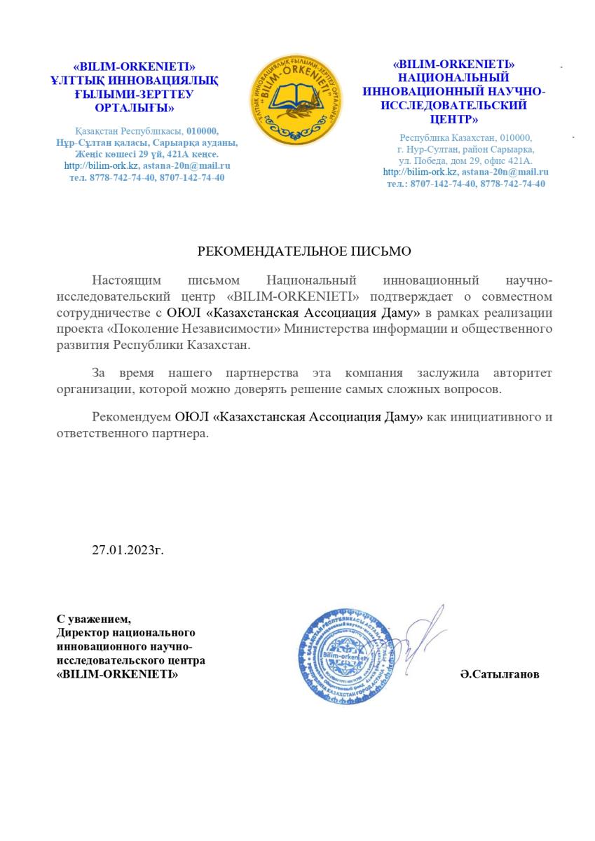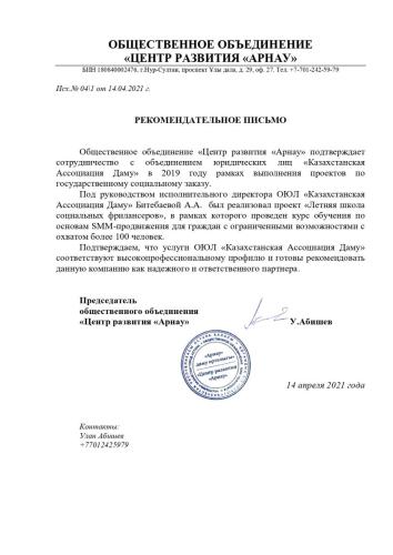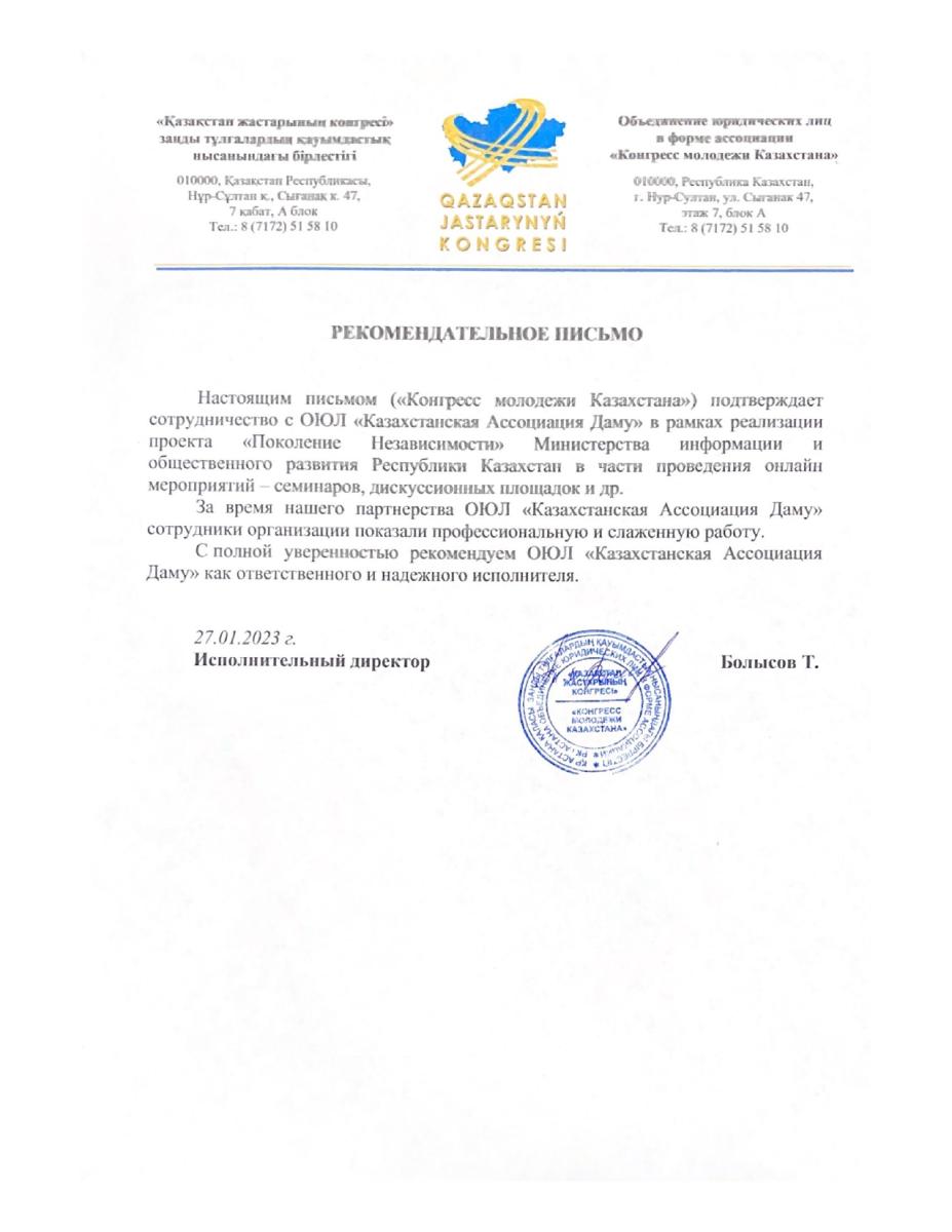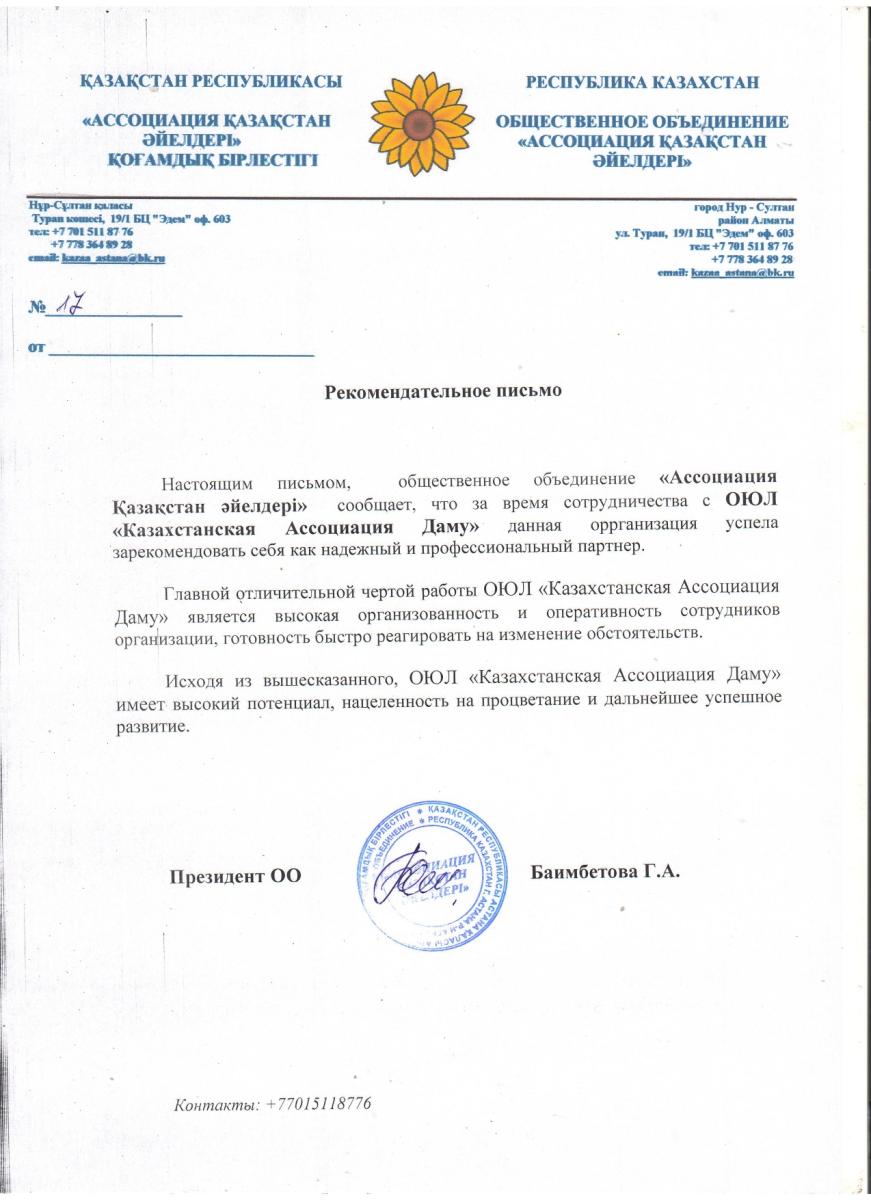 ОЮЛ «Казахстанская Ассоциация Даму» — это некоммерческая организация, основанная в январе 2019 года для реализации социально-значимых проектов.