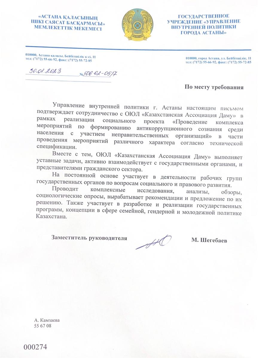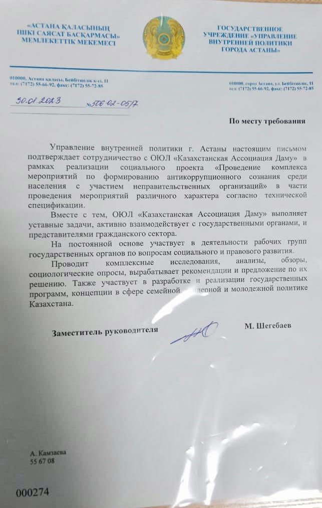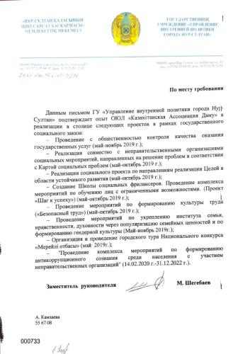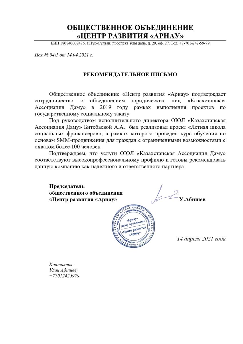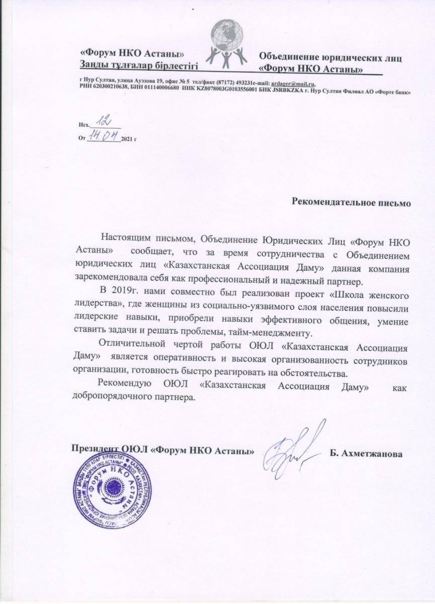 ОЮЛ «Казахстанская Ассоциация Даму» — это некоммерческая организация, основанная в январе 2019 года для реализации социально-значимых проектов.